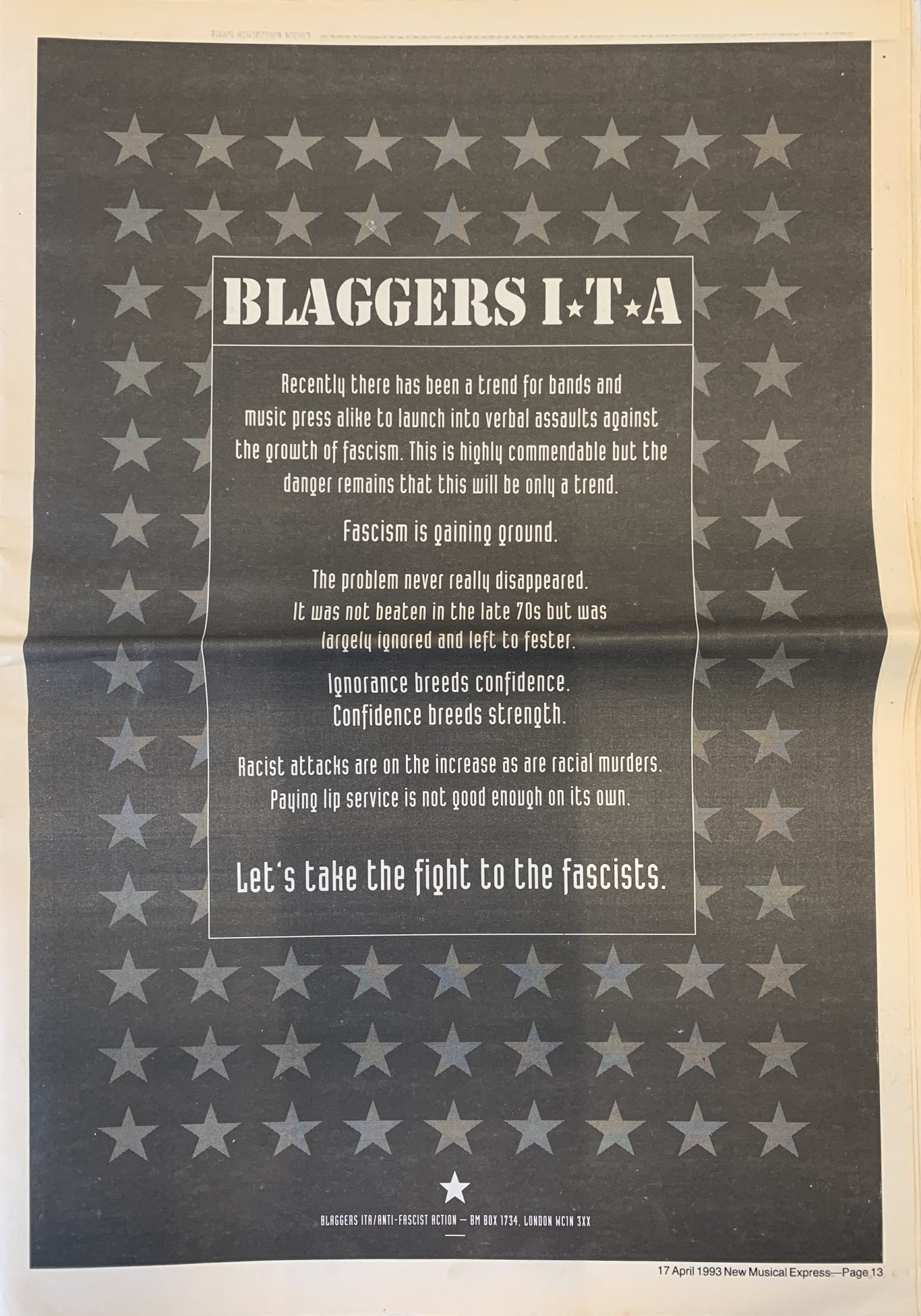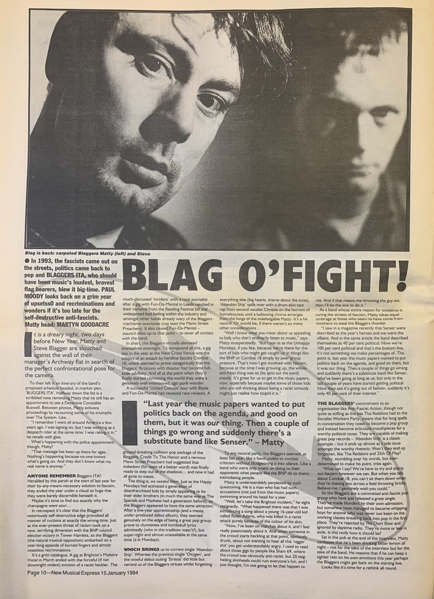 Blag O'Fight! - New Musical Express feature 15th January 1994.